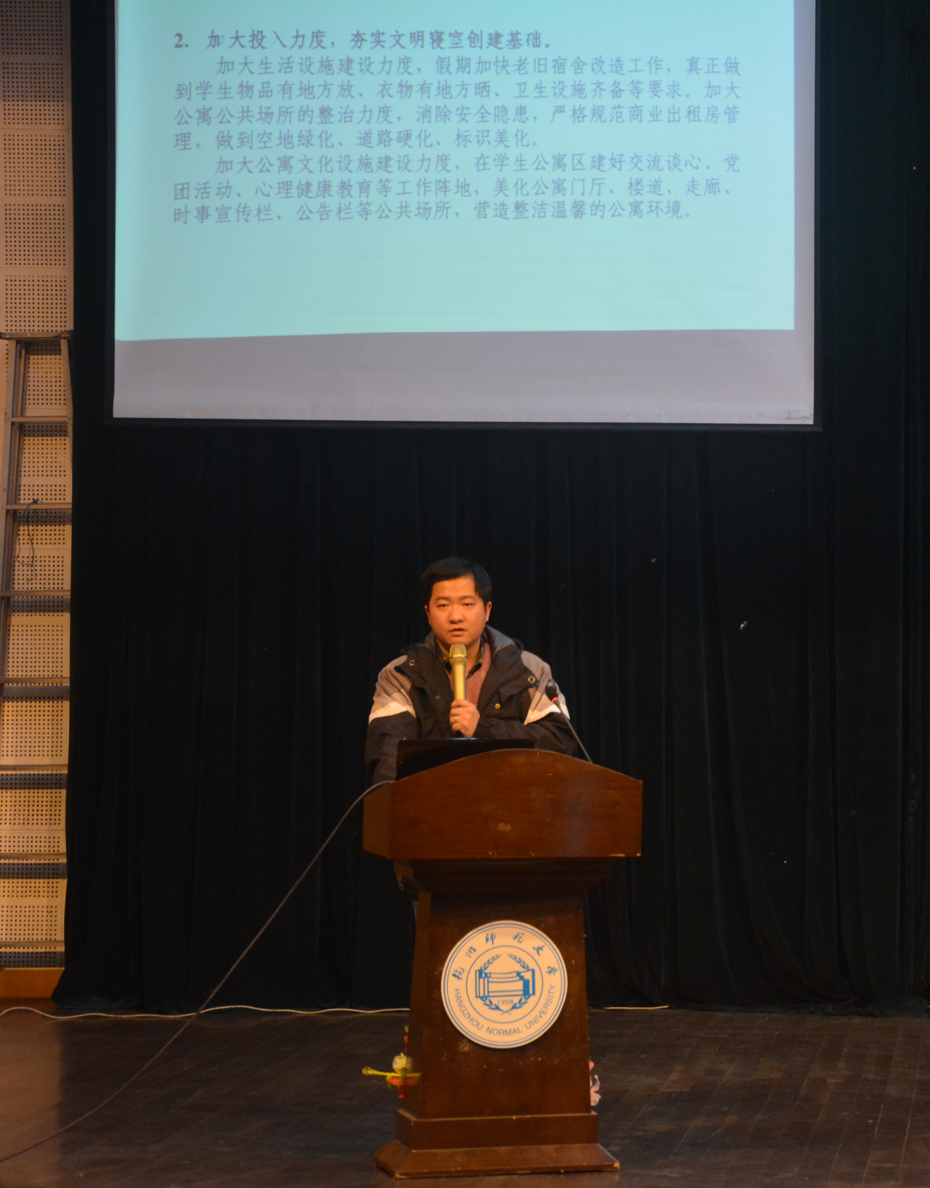 紧接着,程心皓老师重点强调了此次关于深化文明寝室创建的活动。他分析了这几天下来走访寝室所看见的各种不文明现象,希望同学们可以在这些部分加大改进。但值得肯定的是,每个寝室都有所行动和付出,同学们也在一点一点地努力改进。细节决定成败,他希望同学们从小事做起,每一天,都比前一天做的更好一点。同时,程老师强调了学院将进一步强化督促检查,希望大家能切实将各项措施落到实处。程心皓老师与同学们分享了该如何改进寝室风气的小诀窍,而学校方面也将加大投入力度,夯实文明寝室建设基础,营造良好的公寓文化氛围,用新颖独到的方式迎接这次挑战。