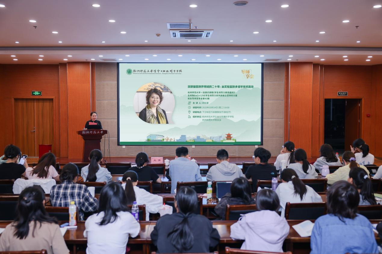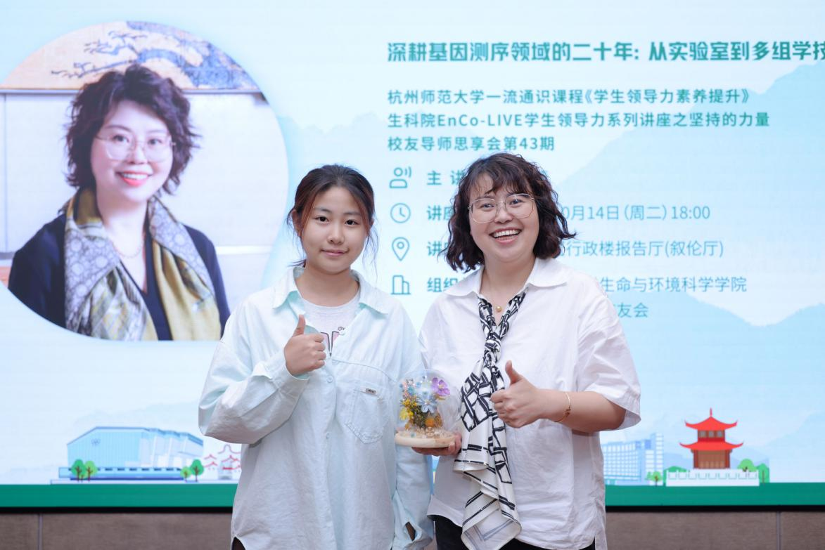 10月14日晚,2001届应用生物技术教育专业校友、杭州联川生物技术股份有限公司董事长兼总经理、博士、正高级工程师郎秋蕾做客校导师思享会第43期、校一流通识课程《学生领导力素养提升》、生科院EnCO-LIVE学生领导力系列讲座,并做了题为“深耕基因测序领域的二十年:从实验室到多组学技术高地”的讲座。讲座由杭州师范大学生命与环境科学学院、校友会主办,生科院党委副书记王倩主持,近200名师生参加。