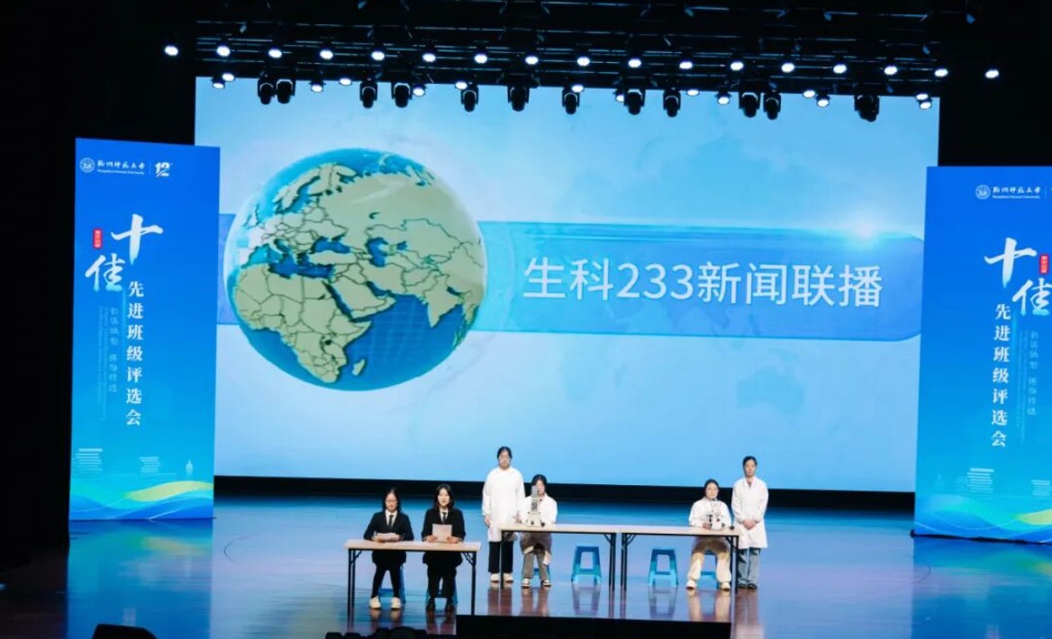 生科233班通过生动的“新闻联播”表现形式,结合专业特色,从班级荣誉、学风建设、社会工作等方面展现我院优秀班级风采,并最终荣获“十佳先进班级”荣誉称号。这不仅是展示优秀班级风采的舞台,更是一场学生文化生活的盛宴,为学院师生营造了一片积极向上的校园氛围。
