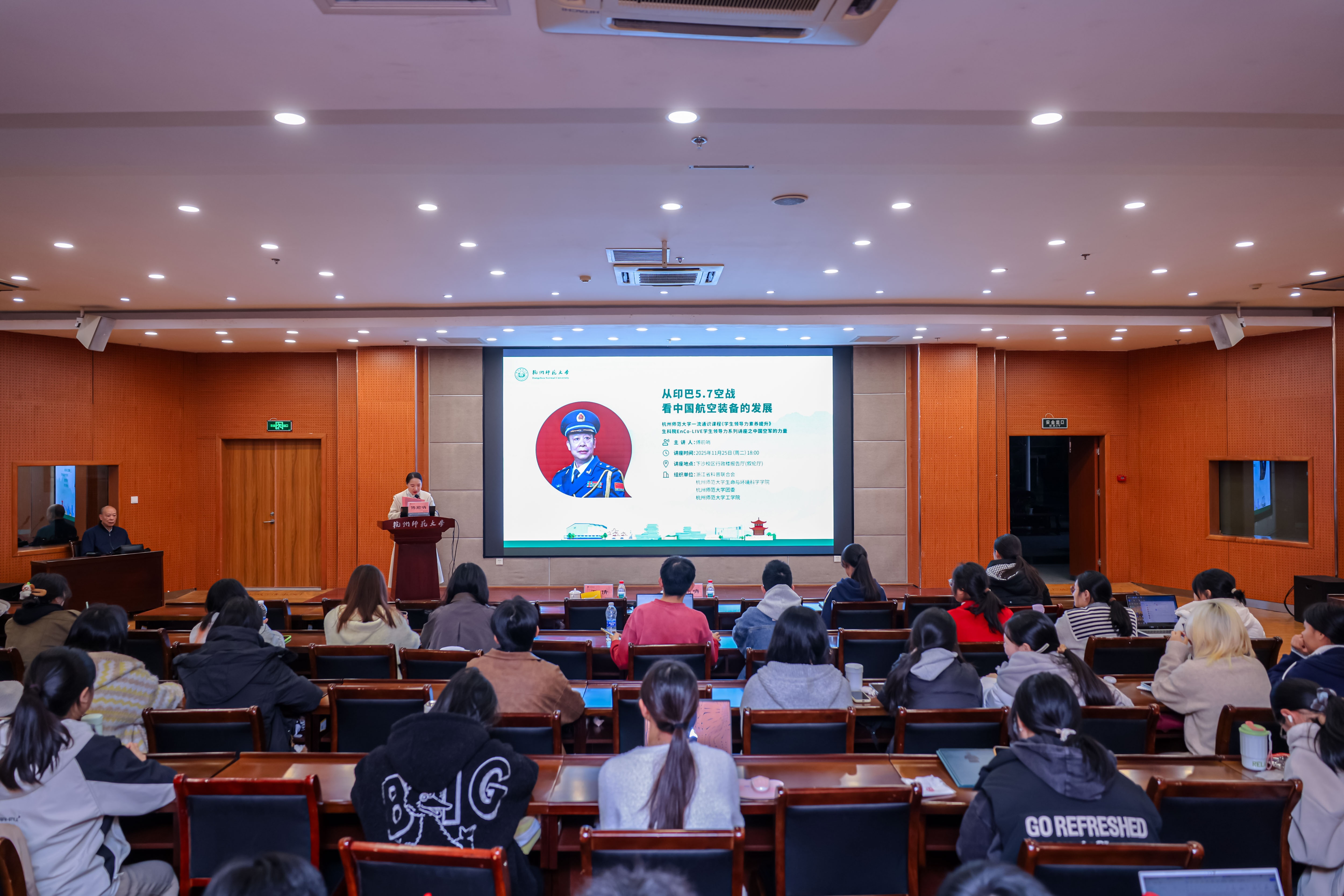 11月25日晚,浙江省科普联合会走进杭师大,与生命与环境科学学院EnCo-LIVE学生领导力系列讲座、学校一流通识课程《学生领导力素养提升》相结合,特邀空军《航空杂志》社副编审、中央电视台特邀军事专家傅前哨做了题为“从印巴5·7空战看中国航空装备的发展”的专题分享。活动由杭州师范大学生命与环境科学学院、校团委、工学院联合主办,生科院党委副书记王倩主持。近200名师生参与本次讲座。