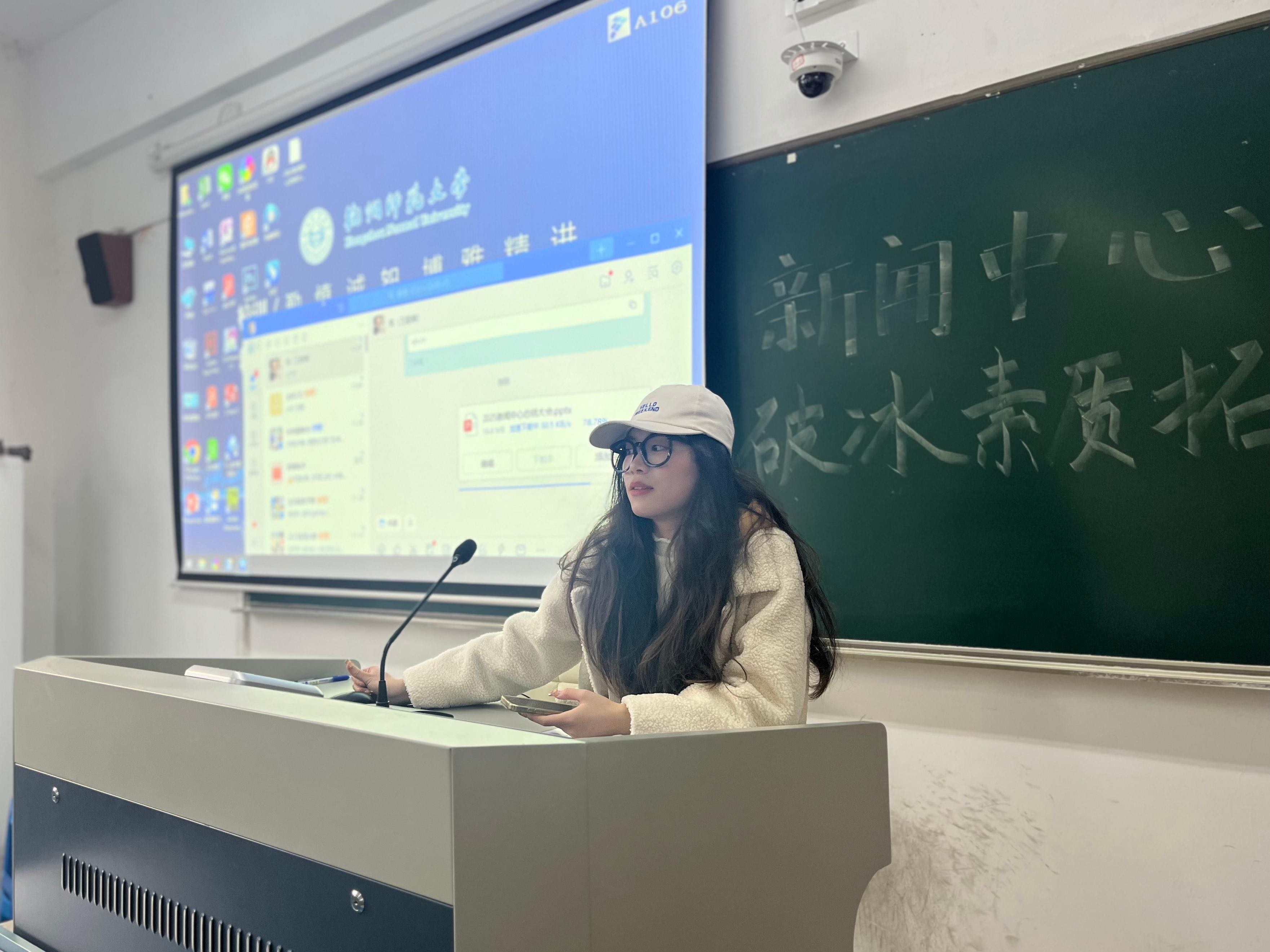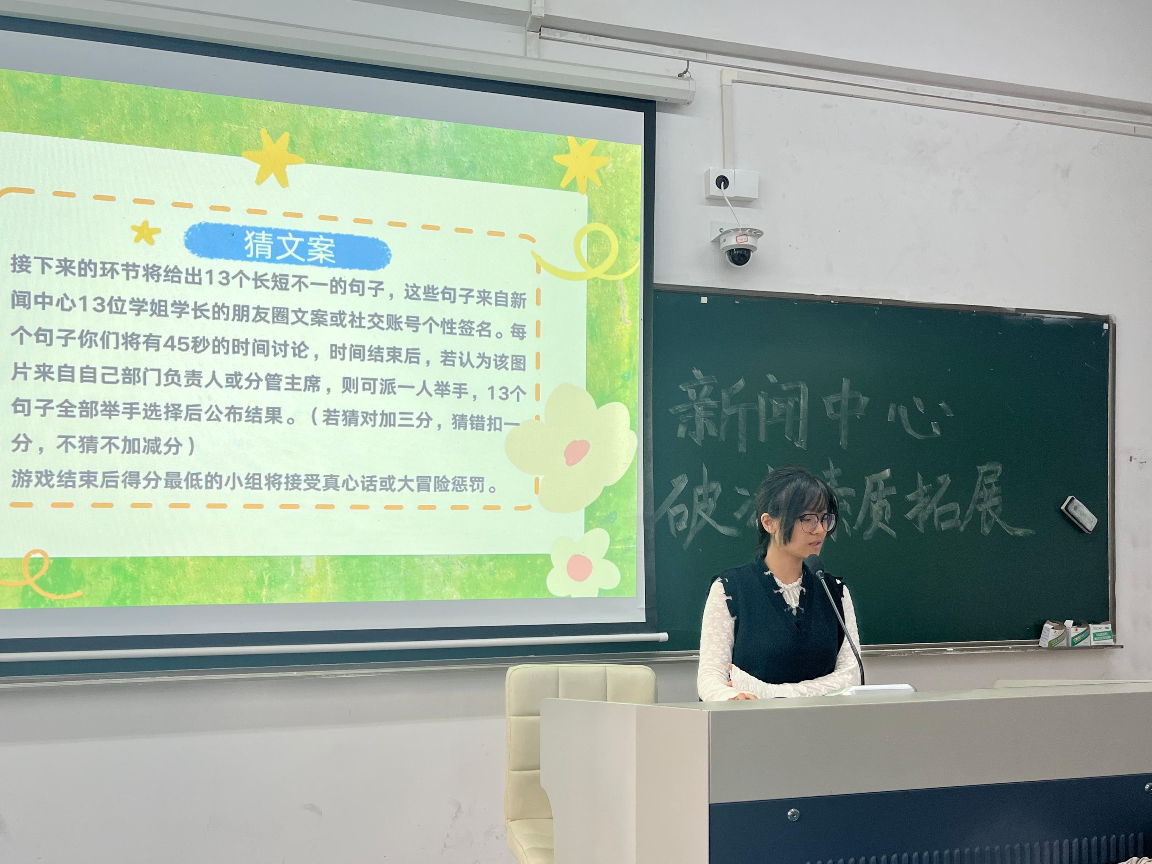 活动在主持人的开场致辞中拉开帷幕,其详细介绍了活动背景与流程,并带领全体成员共同观看新闻中心学期工作回顾视频。镜头里的成员合影、工作花絮等画面,生动再现了过去一学期新闻中心的点滴付出,也让新成员快速融入集体氛围。