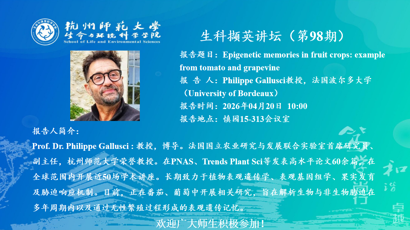 来源 : 生命与环境科学学院     作者 : 生科院     时间 : 2026-04-17     点击 : 0